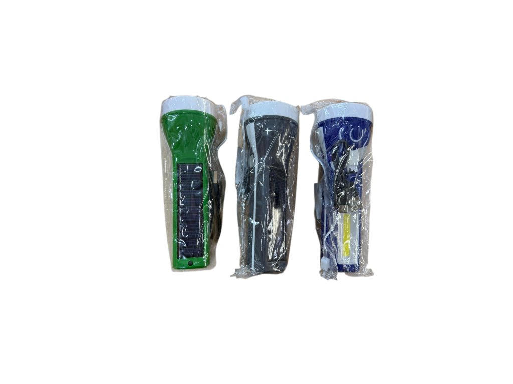 Đèn pin năng lượng mặt trời + dây sạc usb-C, đèn có 2 kiểu chiếu sáng là : rọi thẳng và chiếu sáng ở bên cạnh thân đèn. Chiều dài đèn là 16cm. 1 bịch có 12 cái mix 3 màu như ảnh