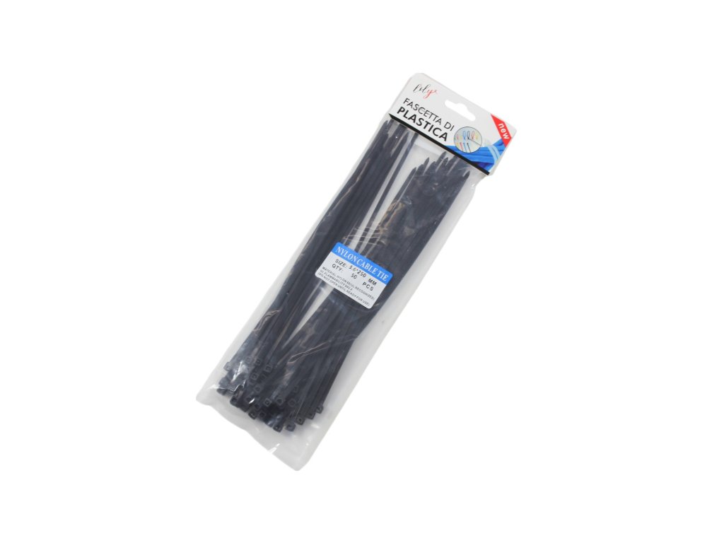 Dây thít nhựa đen 3.6x250mm gói 50ks kẹp giấy treo (bịch: 12 gói)