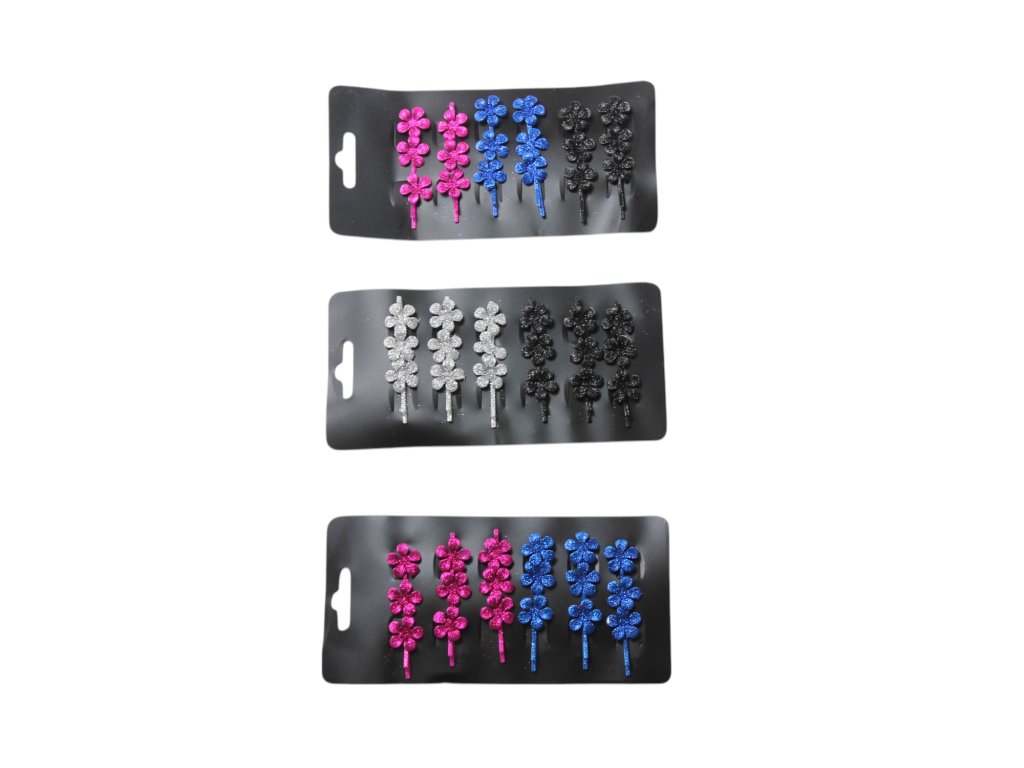 Cặp ghim tóc hình hoa bộ 6ks vỉ nhựa trong túi bóng treo (bịch: 12 vỉ)