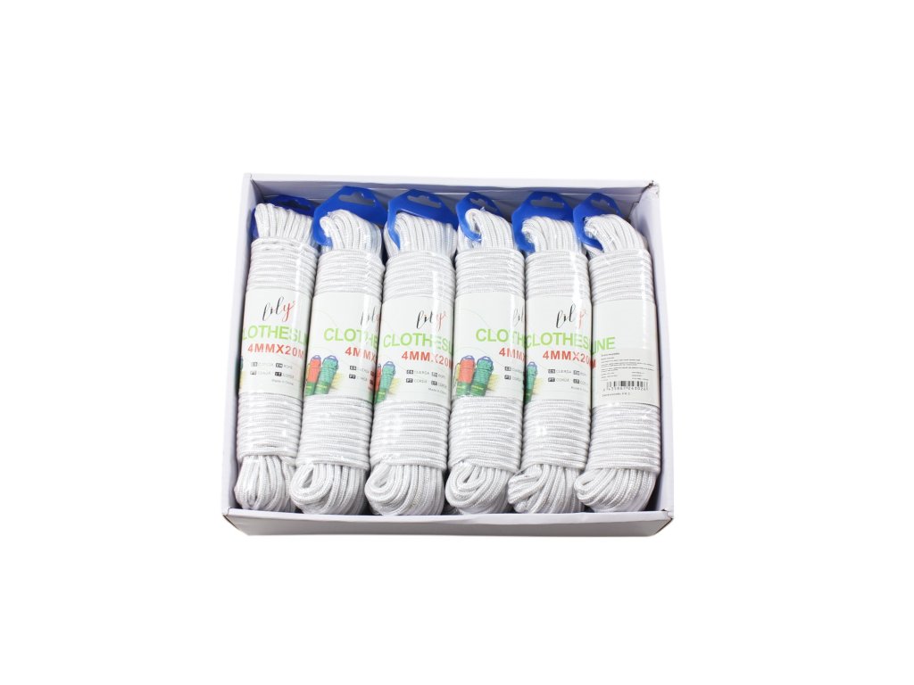 Dây dù bện trắng 4mm x 20m kẹp nhựa treo (bịch: 12ks)