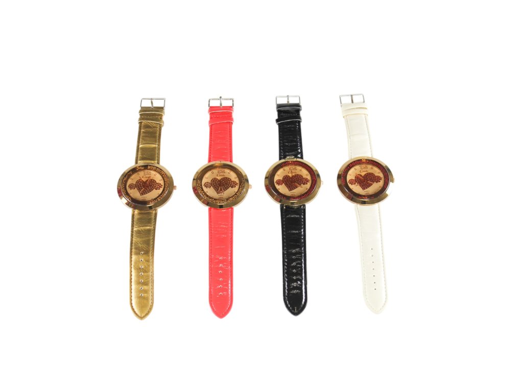 Đồng hồ mặt tròn dây giả da trong hộp giấy 12ks