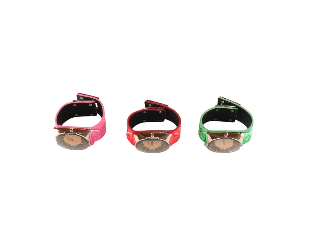 Đồng hồ mặt tròn dây giả da trong hộp giấy 12ks