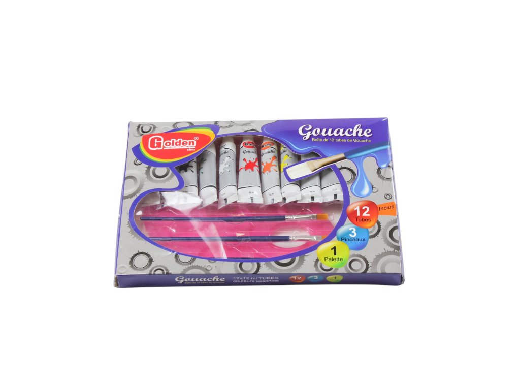 Màu vẽ nước tuýp Golden bộ 12ks + khay nhựa + 3 chổi vẽ