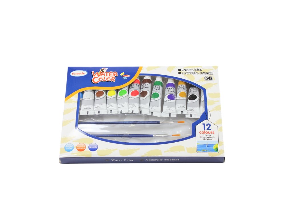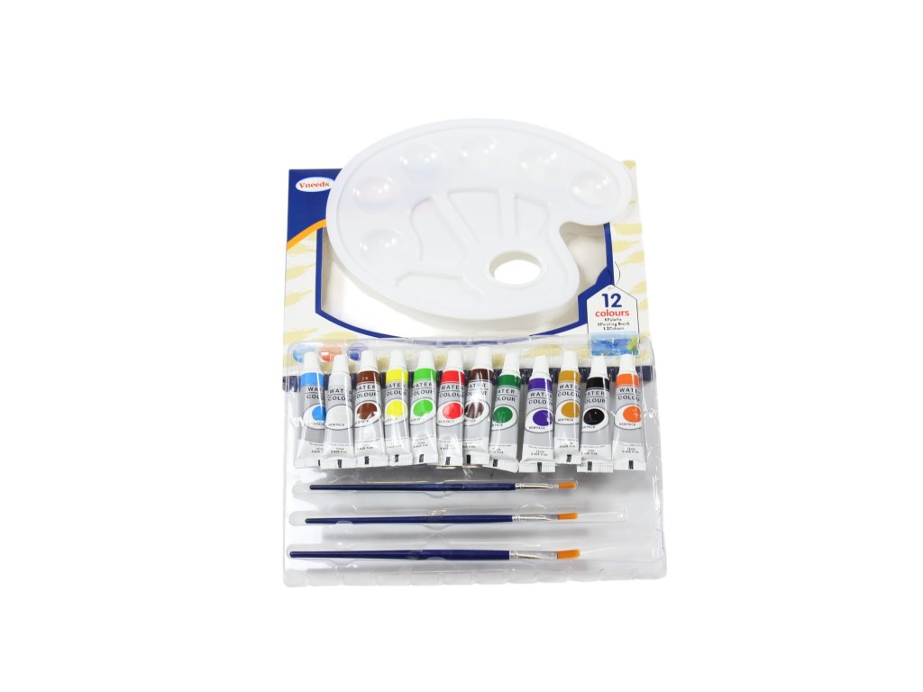 Màu vẽ nước tuýp Vneeds bộ 12ks + khay nhựa + 3 chổi vẽ