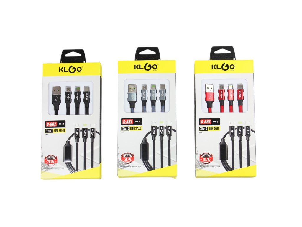 Dây nạp điện thoại đa năng cổng USB-A ra 3 đầu các loại 1m 3A (bịch: 10ks)